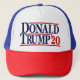 Achetez un casquette 2020 blanc et bleu rouge de camionneur d'atout et soutenez Donald Trump pour le président ! Comportant les mots, Donald Trump dans un texte bleu audacieux, '20 en rouge, porté sur l'avant du casquette. Choisissez de différentes couleurs de casquette et obtenez le vôtre aujourd'hui.