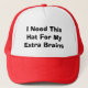 Un casquette avec "moi ai besoin de ce casquette pour mes cerveaux supplémentaires" là-dessus.