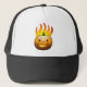 Un visage Citrouille d'Halloween enflammé sur un chapeau de camion.