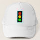 Illustration graphique audacieuse du voyant de signalisation de contrôle de la circulation, en rouge, jaune et vert, avec bordure bleu clair.