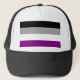 Le drapeau de la fierté asexuel se compose de quatre bandes horizontales : noir, gris, blanc et violet du haut en bas. Le drapeau a été créé par l'utilisateur standup d'AVEN en août 2010, dans le cadre d'un effort communautaire pour créer et choisir un drapeau. La bande noire représente l'asexualité, la bande grise représente les as gris et les désisexuels, la bande blanche représente les alliés et la bande violette représente la communauté.