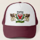 Le chapeau de camionneur ci-dessus présente le bouclier irlandais Fitzgibbon, installé à l'intérieur d'une couronne de laurier, avec des griffons de chaque côté. Vous pouvez personnaliser votre nom selon l'orthographe correcte ou ce que vous voulez ! Faites étalage de votre fierté irlandaise lors des festivals celtiques, de la Saint Patrick, ou portez-vous à votre prochaine réunion ou réunion de famille! Erin go Bragh !