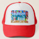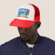 Un chapeau de camionneur rouge et blanc au design balnéaire fait d'un collage en papier peint à la main. Voir aussi carte de voeux, affiches, cadeaux et vêtements correspondants