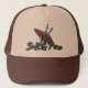 Portez notre chapeau de camionneur Cowabunga Time, avec un squelette panneau de paix et panneau de surf en couleurs vintages, orange et vert brûlé.