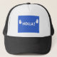 L'arrière - plan bleu célèbre avec le "Holla" a imprimé dans le blanc et des 2 mains soulevant le toit du côté.