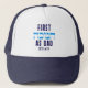 PREMIER HANOUKKA AS DAD Trucker Chapeau avec le TEXTE PERSONNALISABLE. Hanoukka est écrit en hébreu. Vous pouvez CUSTOMISER le "AS DAD" (par exemple remplacé par MOM, peut-être ?) et PERSONNALISER avec votre nom de bébé et/ou votre année. Une belle étape souvenir Trucker Hat pour nouveau père célébrant son premier Hanoukka "paternel". Sweatshirt correspondant et version maman disponible.
