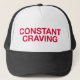 Amusement IMPLORANT CONSTANT et slogan ironique sur le casquette de camionneur, rouge, déclaration typographique drôle, inspirée par rossitano de contreseing de caractère de comédie de TV. cravings constants et perpétuels.