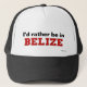 Je serais plutôt à Belize ! Êtes-vous de Belize ? Avez-vous un ami ou un membre de la famille qui aiment Belize ? Si oui, ceci "je serais plutôt dans…" est le casquette ce que vous recherchez ! Les caractéristiques de conception "je serais plutôt dans" dans le petit lettrage noir le dessus et à "Belize" dans le grand lettrage rouge au fond.