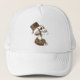 Un crâne en bronze habillé d'un chapeau avec les yeux rouges feu