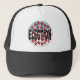 Cette image est une image d'étoiles rouges sur un rond blanc et bleu. L'élection est imprimée en noir sur l'image. Ce casquette de camionneurs est disponible sur des couleurs et des tailles assorties.