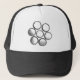 Une image noire et blanche de style de croquis de plusieurs argentent des casquettes de bouteille à bière en métal disposés dans une conception de fleur avec un centre et des pétales.