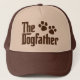 Avec le texte du Dogfather avec des empreintes de pattes en marron, ce camionneur brun et bronzé est le casquette parfait pour le papa chien. Bien que les mots ne soient pas modifiables, vous pouvez changer la couleur du texte à ce que vous voulez et le rendre unique à vous. Achetez maintenant pour la Fête des pères ou l'anniversaire de votre père de chien préféré.