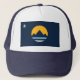 Casquette avec le nouveau drapeau de la ville de Reno, Nevada; un drapeau bleu foncé avec un soleil jaune et des montagnes bleues au centre