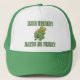 Les caractéristiques de conception du jour de ce St Patrick drôle un shamrock de sourire de bande dessinée avec une barbe, un tuyau, et un grand casquette supérieur vert et la légende "whiskey irlandais me rend vif" en grand texte vert.