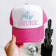 Ce chapeau de camionneur 'enterrement de vie de jeune fille tout simplement saoule' présente une écriture inspirée du néon en rose et bleu. Associez ce chapeau avec le chapeau de mariée 'ivre d'amour' pour un événement d'enterrement de vie de jeune fille cohérent. 💜 Les couleurs sont personnalisables ! Cliquez sur 'modifier le design' pour créer vos propres couleurs.