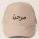 Caractères gras "Marhaba" en arabe = accueil, bonjour - des polices de brun foncé sont imprimées sur un casquette kaki. Vous pouvez choisir des autres couleurs /styles si vous choisissez de customiser.