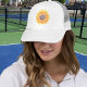 This unique trucker hat is decorated with a yellow watercolor sunflower and stylish typography.