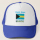 Bahamas et drapeau bahaméen bleu personnalisation camionneur qui montre le drapeau bahaméen et le mot BAHAMAS en dessous. Ci-dessus, ajoutez votre nom, en lettres bleues, pour une touche personnalisée à ce cadeau casquette ou customisé. Le drapeau est bleu, jaune et blanc.Parfait pour porter à votre réunion de famille Bahama, groupe de voyage ou club. Un cadeau magnifique.