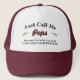 Customisez ceci avec le nom Grand-Père de votre choix, pour un cadeau spécial d'un gentil. Le casquette personnalisé est parfait pour le grand-père cool à porter pendant qu'il est dehors à la pêche. Il dit Just Call Me Your Text Parce que je suis BEAUCOUP trop Cool pour être appelé GRAND-PÈRE, et a quelques leurres de pêche de chaque côté du nom de grand-père.