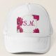 A stylish hat featuring a modern floral design with a gold circle accent, perfect for everyday wear.