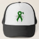 Ruban vert avec un papillon, cercles et nageoires. Le ruban vert est associé Glaucoma Awareness en Janvier. Ruban de sensibilisation aux troubles bipolaires en février. Sensibilisation aux maladies du rein, sensibilisation aux dons de rein et sensibilisation à la réadaptation mentale en mars. Sensibilisation à l'environnement, sensibilisation au don d'organes vivants, sensibilisation au don d'organes, sensibilisation à la transplantation d'organes et sensibilisation au don de tissus en avril. Sensibilisation à la paralysie cérébrale, sensibilisation à la dépression chez l'enfant, santé mentale et maladie mentale, sensibilisation des enfants disparus, sensibilisation à la neurofibromatose, recherche sur les lésions de la moelle épinière, sensibilisation au syndrome de la tourette en mai. La sensibilisation au syndrome de la Tourette en juin également. Sensibilisation aux maladies mitochondriales en septembre. Sensibilisation à la dépression, sensibilisation à la dépression maniaque et sensibilisation à l'alphabétisation en octobre. Sensibilisation au don de la moelle osseuse en novembre. Sensibilisation à la prévention des blessures oculaires, Sensibilisation au syndrome de Fanconi, Fibrodysplasie Ossificans Progressiva, Sensibilisation à la liberté, Croissance et reconstruction, Cancer du rein, Sensibilisation au syndrome néphrotique, Sensibilisation aux déficiences du tube neural, Cholangiite de premier sclérose, Sensibilisation à la conduite sécuritaire, Sauvons la sensibilisation au darafur, Sensibilisation aux donneurs de cellules souches, Recherche sur les cellules souches, Cholanges traumatiques Sensibilisation aux blessures, Von Hippel Lindau Sensibilisation, Sécurité des travailleurs Sensibilisation.