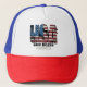 "USA God Bless America" trucker hat, great fun to wear for summer games, parties and 4th of July celebrations. Perfect gift for family or friends that wear hats love America and are patriotic.