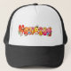 Calling all Vanessa! This adorable trucker-style baseball cap features a fun, personalized graphic on the front panel. The name "Vanessa" is spelled out in bubbly, sunset-colored letters decorated with wildflowers and cute honeybees.