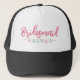 Chapeau de camionneur pour demoiselle d'honneur avec thème de plage rose pour week-end de célibataire. Un thème côtier ou nautique en aquarelle avec des nuances de rose et de sarcelle, créant l'ambiance pour une escapade à la plage avec la mariée et ses meilleures amies. Pour des voyages en Floride, aux Hamptons, en Californie, ou même quelque chose de plus international comme au Mexique, à Hawaï ou aux Bahamas, ce week-end entre filles va être inoubliable ! Jolies coquilles roses et sarcelles et étoiles de mer sur une corde. C'est tout simplement ces vibes de plage tropicale décontractée. Avec des polices modernes ajoutant une touche stylée, c'est le look parfait pour votre week-end de célibataire. Juste vous et votre groupe, créant des souvenirs sur fond de sable et de mer. Découvrez également toutes
