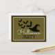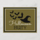 Ces invitations par carte postale sont parfaites pour toute personne qui planifie une fête d'Halloween. Le design est composé d'une chauve-souris casquette et vampire et est fini avec le libellé modifiable correspondant. Ce design doré et noir peut être personnalisé pour votre événement spécial et sera le faire-part parfait pour toute fête d'Halloween, y compris les baby showers, fêtes d'anniversaire et bien plus encore.