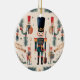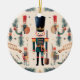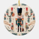 Enchantant et délicieux Nutcracker Noël Ornament. Ce design met en valeur un charmant casse-noisette entouré d'illustrations de Noël dans des couleurs très festives et de vacances.