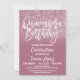 This elegant and girly wedding quinceañera birthday party invitation is perfect for the stylish and trendy young teenage girl. It depicts a faux printed sparkly mauve pink glitter and cassis pink background ombre gradient on the front with custom white brush script typography. On the back are mauve-pink and dazzling silver ombre. It's elegant, chic, modern, glamourous, and pretty!