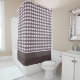 Dark cassis purple and white gingham check shower curtain features a wide solid border at the bottom. Mix and match with other patterns and solid colours to brighten up a white bathroom, especially in a new white-walled apartment or dorm or new house.