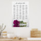 This gorgeous wedding seating chart features a photo of a long-stemmed cassis purple, magenta, or berry colored rose lying on its side reflecting in a pool of water with waves and ripples. The title reads "please find your table" in elegant lacy script calligraphy. There is space for the up to 250 names with the names of the couple and wedding date below. Wonderful way to help your guests find their tables while making your reception more beautiful.