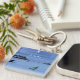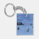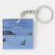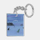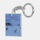 A watercolor painting of a shipwreck, a castaway, and a message in a bottle adorns this customizable keychain!