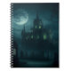 Spiral notebook of the gothic residence of a villainous necromancer. Every night of a full Moon the evil thaumaturgist conducts his vile experiments animating the dead from the tombs that surround his castle. Nefarious green lights can be seen from the outside every time the necromancer pulls a lever in his laboratory, just the same moment when dead-men groans are heard long and deep in the foggy night... It was made with Leonardo.ai and modified by me.