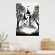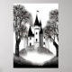 A sketch of a castle on the hill in black and white. This is a AI generated art.