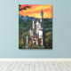 Castle Schloss Neuschwanstein art prints, posters, gifts, and accessories features our original art by Traci Van Wagoner of the famous 19th-century Gothic Revival palace sitting on a rugged hill above the village of Hohenschwangau near Füssen in southwest Bavaria, Germany at sunset. This beautiful castle painting is a perfect gift for anyone who loves castles, palaces, fantasy, and colourful art. The palace has appeared prominently in several movies and was the inspiration for Disneyland's Sleeping Beauty Castle and later, similar structures.