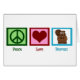 Un signe de paix, un coeur, et un castor mignon sur une jolie carte Peace Love Beavers.