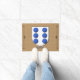 Spanish surname Castro Historical Shield Floormat displays six blue roundels on a silver field set on a faux burlap design background.
