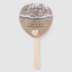 Beach theme wedding program fan, with a photograph of water washing up on a sandy beach and a single seashell. Personalize the text for your wedding day. Matching products are available.