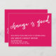 This suite's distinction is due to the modern, handwritten script font used for accent phrases. In this piece, the hand-lettered script font was used to create graphics depicting the words "change is good" on the front, and "stay in touch" on the back. The bright raspberry pink background can be changed to any colour you prefer. Please reach out with any special requests or for customizing assistance. // 100 //