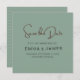 Overall, the Casual Elegance Green Script Typography Wedding Save the Date card is a beautiful and customizable option for couples who want to share the news of their upcoming wedding in style. With its delicate typography and soft colour palette, it is a timeless design that will be treasured by your loved ones for years to come.