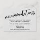 Offer your guests handy cards to help them remember your wedding accommodation arrangements and other details with this modern card. A casual text overlay graphic reading "accommodations" was designed using a modern, handwritten font. Use the template fields to customize these enclosure cards with your personal details. You may change the background to any colour you prefer. Please don't hesitate to reach out if you have special requests. // 100 //