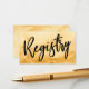 Make it easy for your tribe to remember your gift registry with these bold, simple enclosure cards. I've used a casual handwriting script font to create a bold graphic reading "Registry" for the front. Your details can be updated using the template fields on the back. The background was covered in a bright yellow ombre watercolor wash. Other colours are also available. // 105 //