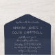 Elements: handwritten typography, whimsical fonts. Colours: silver text on a navy background. Themes: casual, photo, outdoor, romantic, brewery, starry night, whimsical, backyard wedding, chill wedding. Collection: Casual Handwritten Typography Silver & Navy Wedding Collection Product Type: All-In-One Wedding Invitations