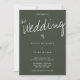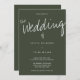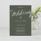 A wedding invitation with a casual, yet modern, typography design. This dark sage green solid colour invitation accents the big event with the word Wedding in a large, handwriting-style, font. The rest of the invitation is in clean, open, typography that gives the design a strong structure. This invitation reflects the relaxed, yet well-organized, nature of your wedding. Ready to check invitations off your list? Simply add your information, add this invite to your cart, and have a great wedding.