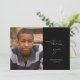 This minimalist graduation thank you card features a large photo and casual script lettering. Against a black background, "Thank you" is written in modern gold script, with the graduate's name and graduation year below in white. To the left, add a large photo of the new grad. The back is blank and can accommodate additional photos or a personalized note to recipients.