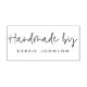 Give your creations a personalized, homemade touch with this custom "Handmade by" rubber stamp. Featuring a casual, flowing handwritten script, it beautifully presents "Handmade by," with your name displayed below in a modern, minimalist sans-serif font. Whether you're a small business owner, artisan, or DIY crafter, this versatile stamp adds a unique and professional finishing touch to your packaging, branding, and custom gifts.