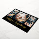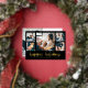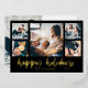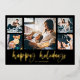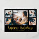 This simple, classic gold foil family Christmas greeting card features modern, casual script typography that says "Happy Holidays" on a dark black background, with a multi photo grid of five photos on the front and one more on the back.