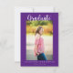This graduation announcement features a casual script font with a purple-and-white theme. The photos on the front and back are for placement purposes only and can be replaced with any photos of your choice. Customize text on the front and back of the card to share the details of the graduate's plans. #graduationannoucement #classof2024 #graduatephoto
